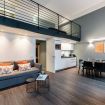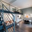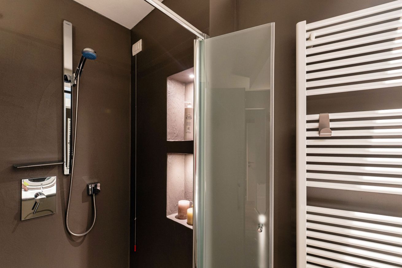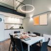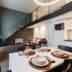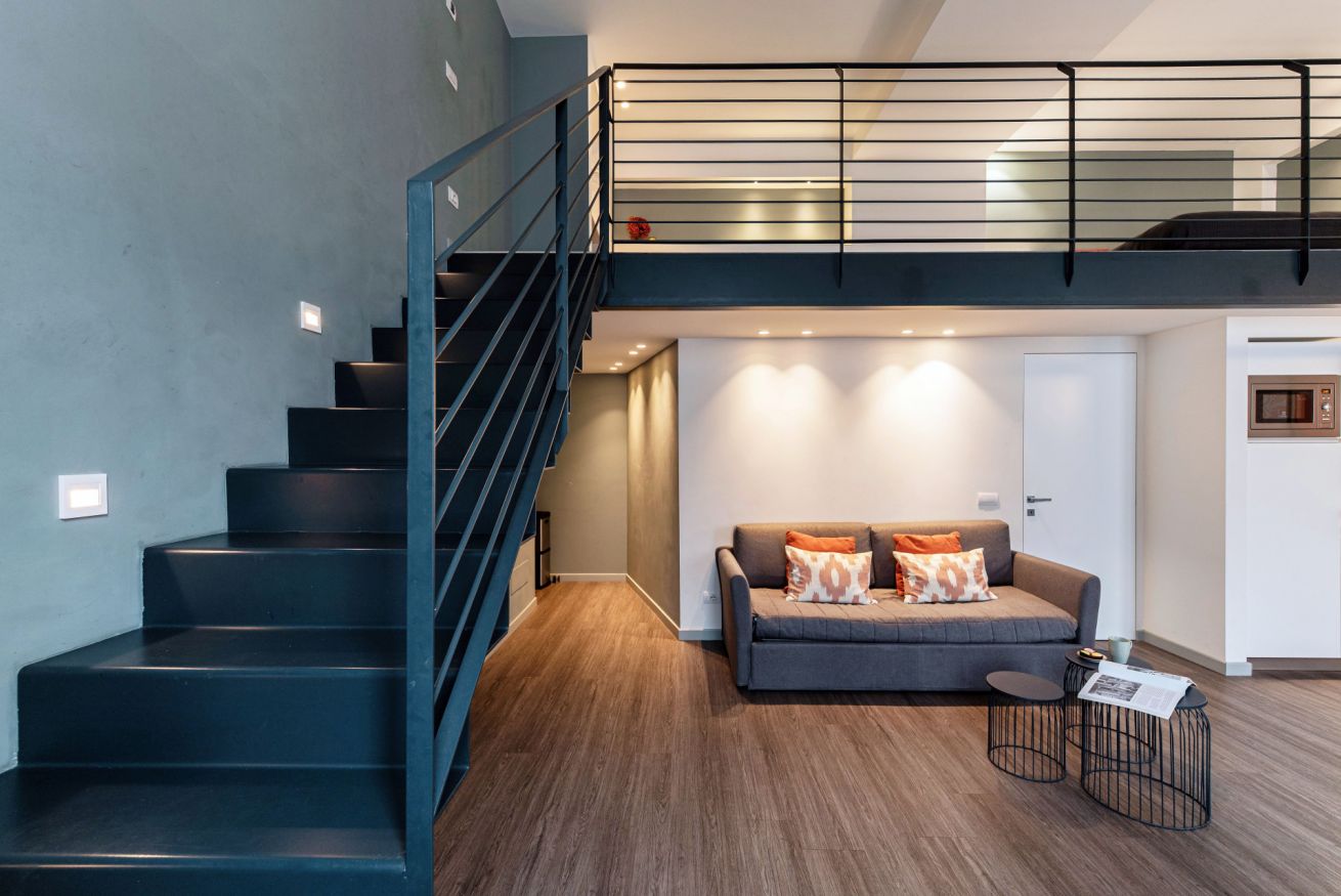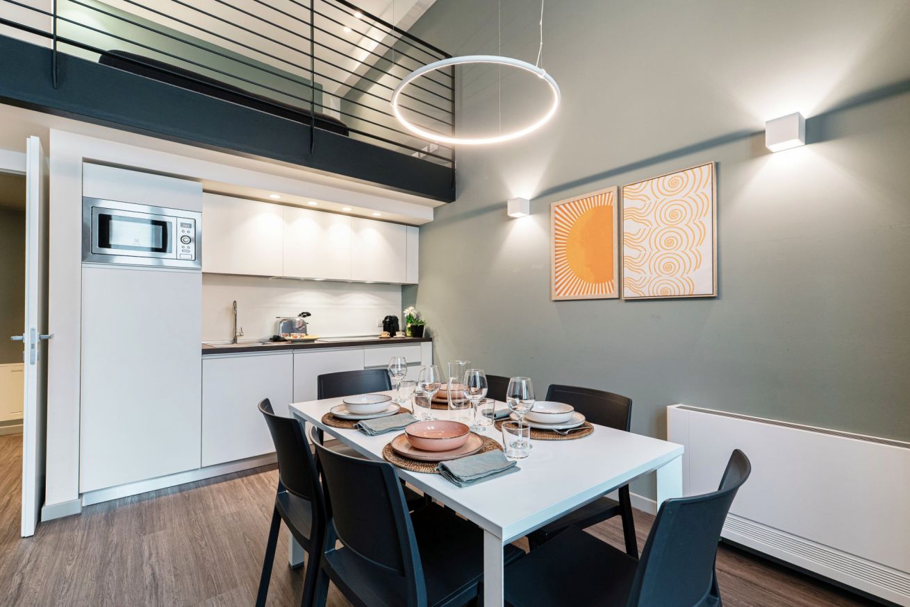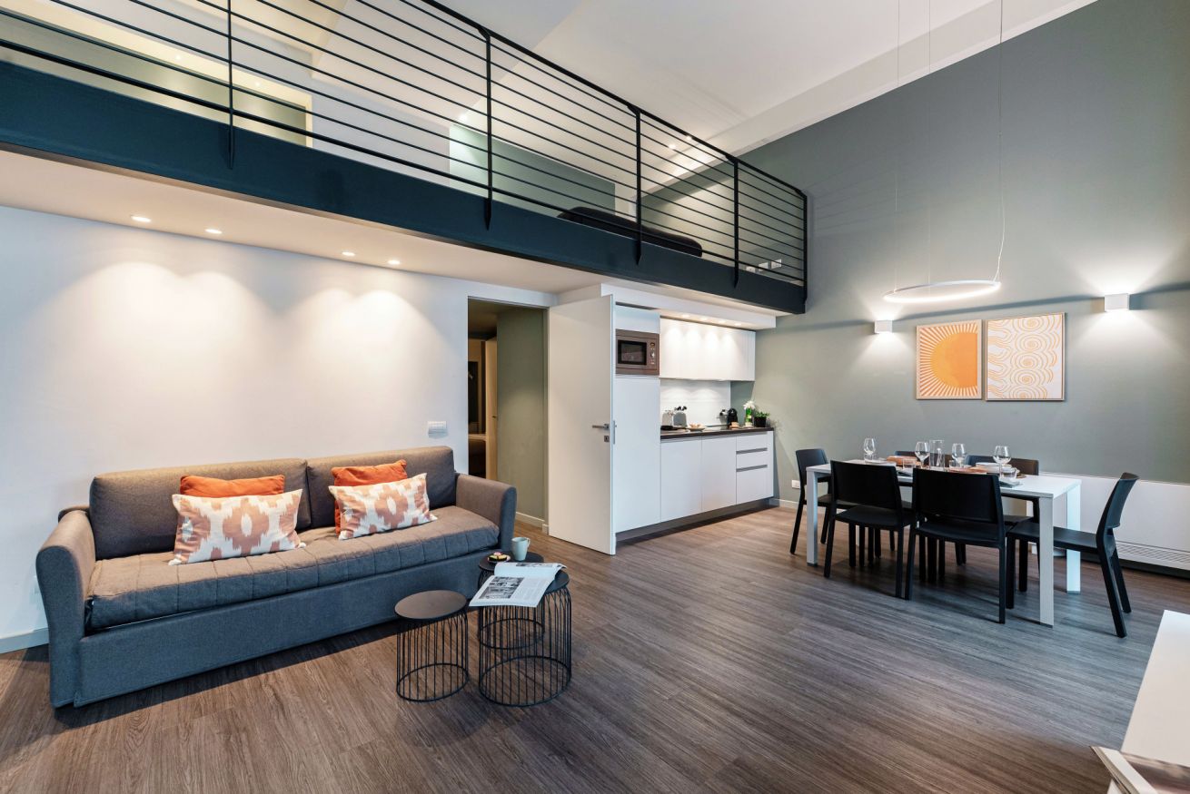"Suite Broletto" can accommodate up to 6 guests. There are two bedrooms with double beds and a sofa bed in the living area which is shared with an equipped kitchenette. Two bathrooms. The apartment is two-leveled with one bedroom in the loft. There is a small courtyard terrace.