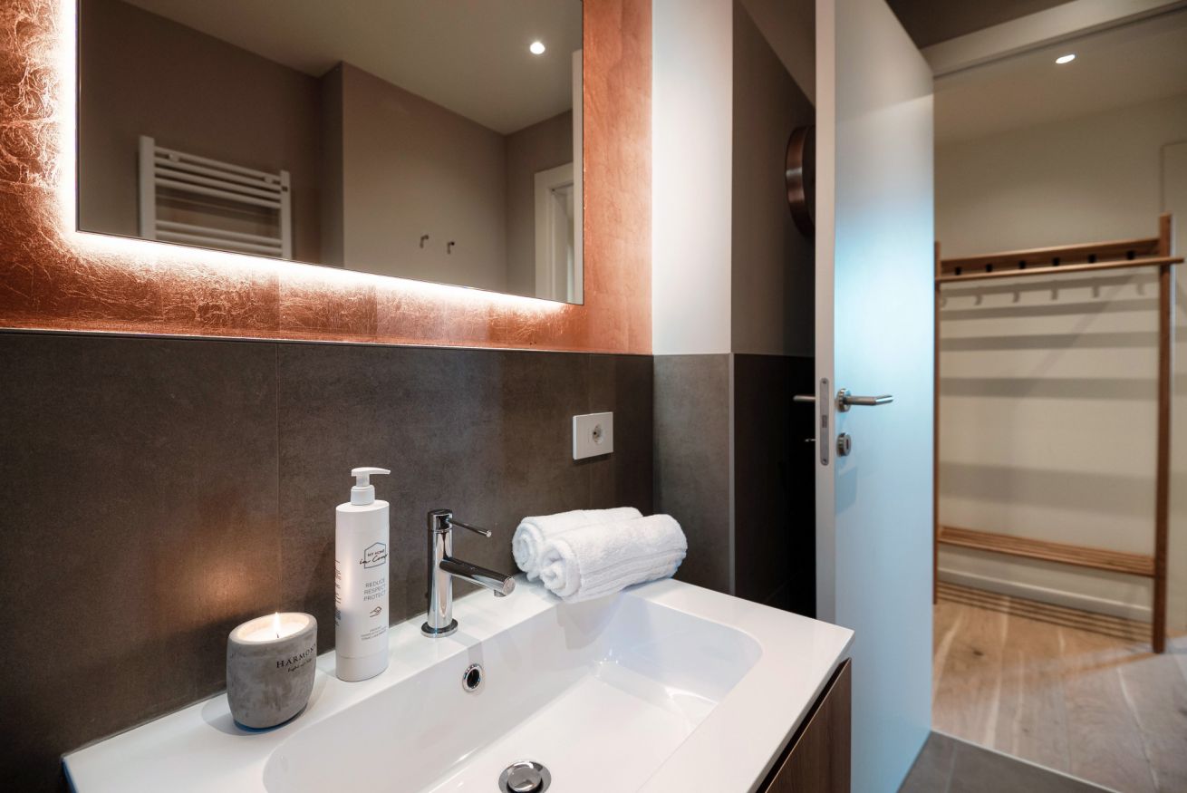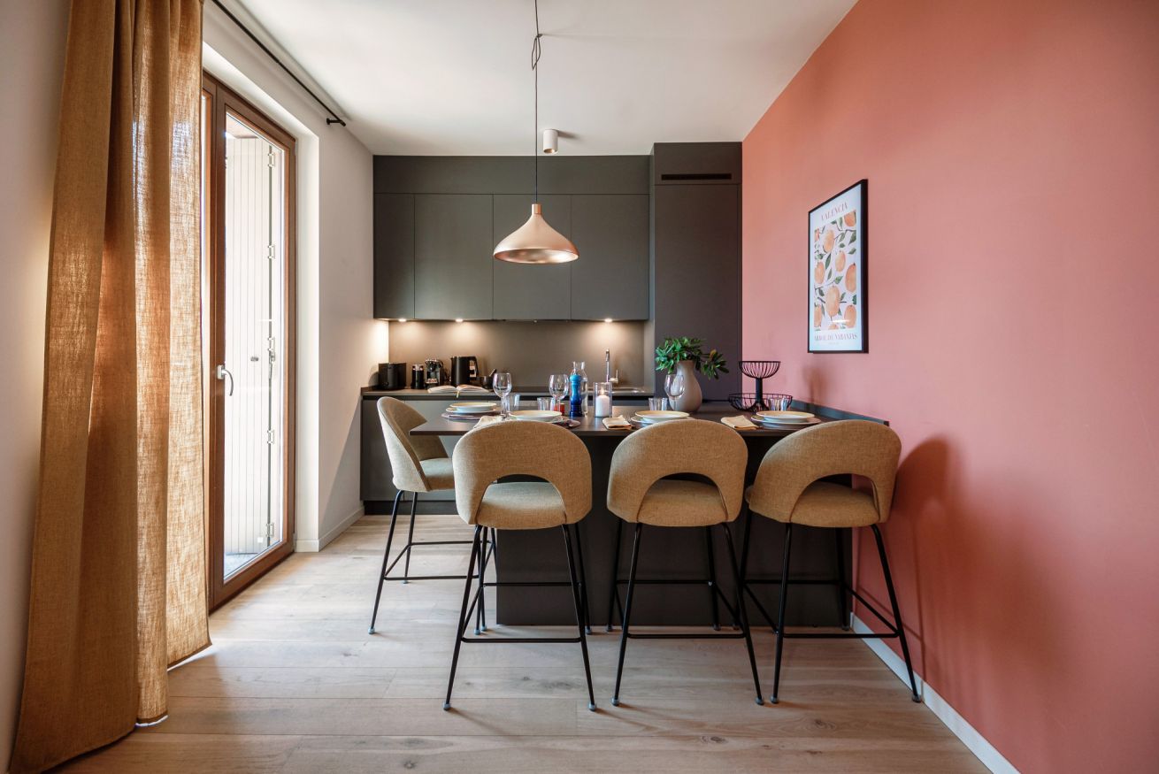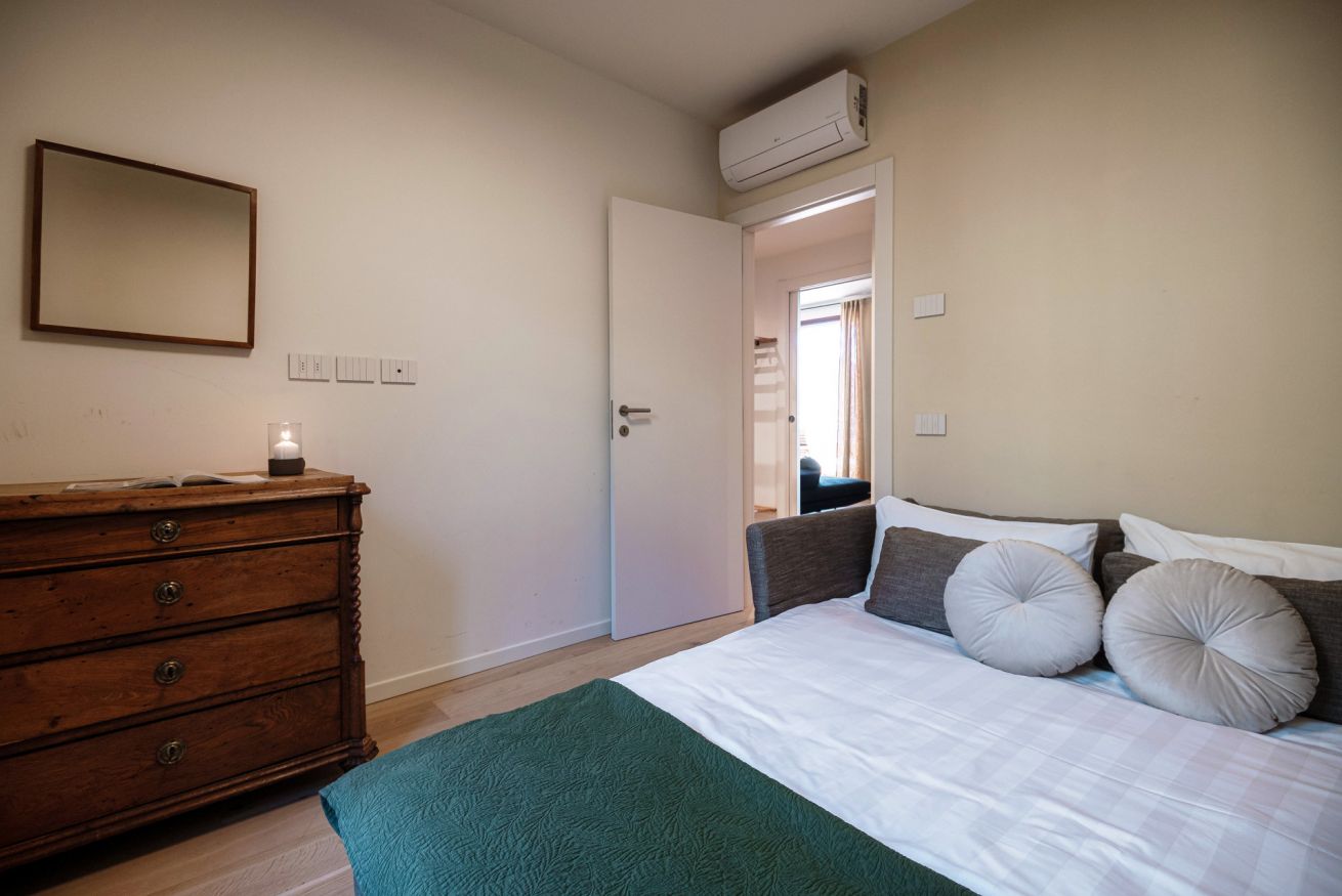 This apartment can comfortably accommodate up to four people, making it suitable for a family or a group of friends. There are two double bedrooms and two bathrooms - one with a shower and one with a tub. The living area includes a modern kitchen equipped with everything you will need - induction cooktop, dishwasher, etc., and a living room with a comfortable L-shaped sofa bed. The apartment also features a washing machine, smart tv and free wi-fi.