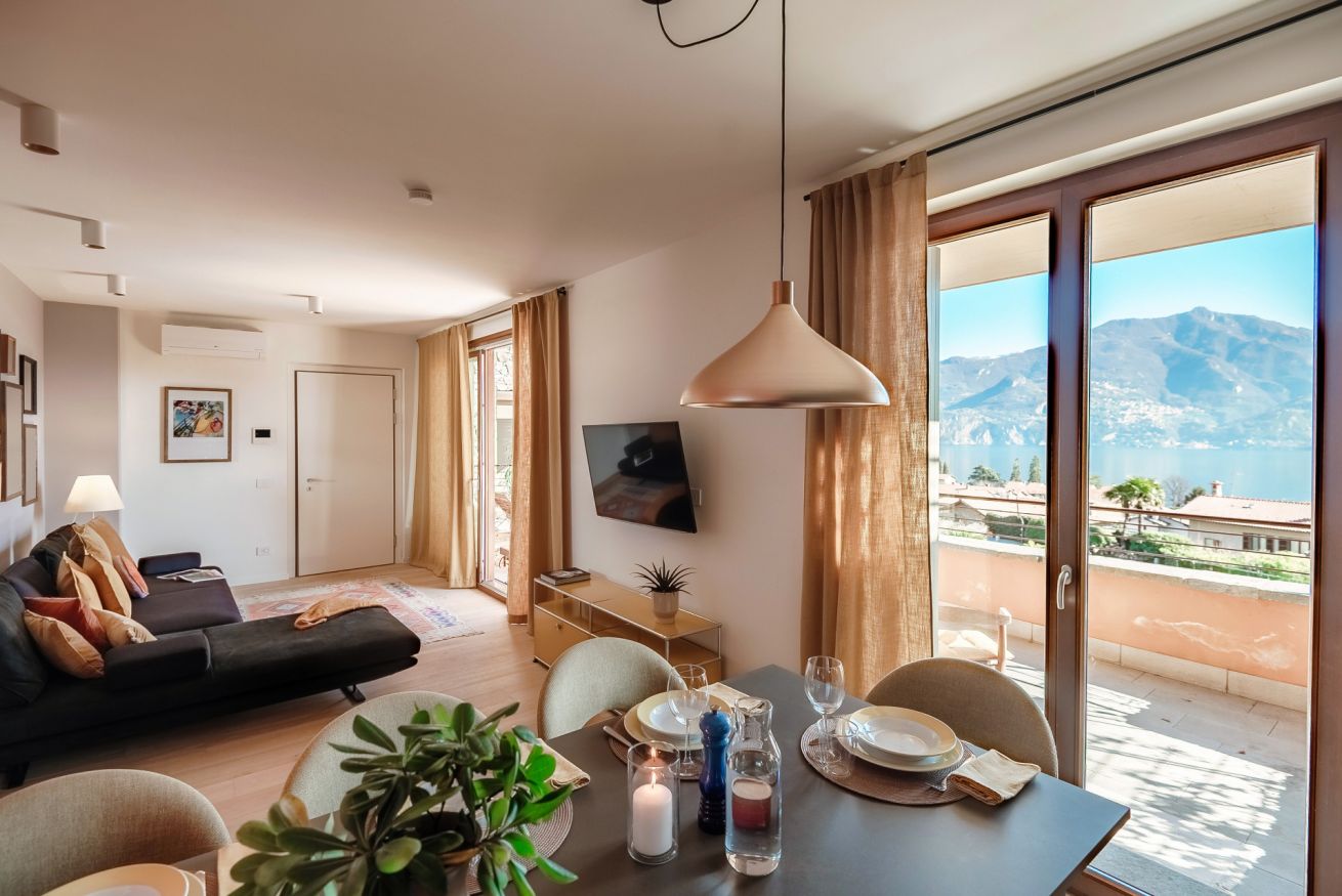 "Belsit" is a cosy and bright apartment located in the charming town of Menaggio on the shores of Lake Como. The modern furnishings contribute to making this apartment very comfortable. From the large furnished terrace, you can enjoy a splendid view of the lake and the mountains, and for your relaxation, there are two outdoor pools - shared with other tenants, one rectangular and one circular pool with a whirlpool. Furthermore, to provide you with the utmost comfort, each room is equipped with air conditioning. This apartment is truly ideal for spending your vacation days.