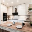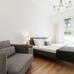 This apartment can accommodate up to 4 people. There are two bedrooms, one with a double bed - equipped with a spacious walk-in closet, and one with two single beds, a living area with a fully equipped kitchen and a living room, and two bathrooms, one with a shower and one with a whirlpool bathtub and a washing machine. Furthermore, all rooms have air conditioning and free wi-wi is available for guests.