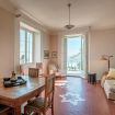 The villa’s interior is furnished with antique furniture, rugs, and various historical items that will make you feel as though you've stepped back in time. The living room is spacious and full of light, thanks to the sunlight that pours in. It opens onto a large terrace offering a stunning view: the rooftops of Como, the lake, the surrounding mountains, and the peaks of the Alps in the distance.