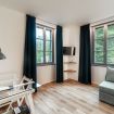 “Just in Front” is a spacious and bright apartment located in Cernobbio, a town just outside the city, only 7 km from Como. The apartment is on the second floor and enjoys a lovely view of the garden and greenhouses of Villa Erba. Its location is ideal, close to the center of Cernobbio, the lake, and the ferry departure point, as well as being strategic for all the internationally renowned events held in Cernobbio, such as the Concorso d'Eleganza of Villa d'Este, Proposte, and Fuori Salone.