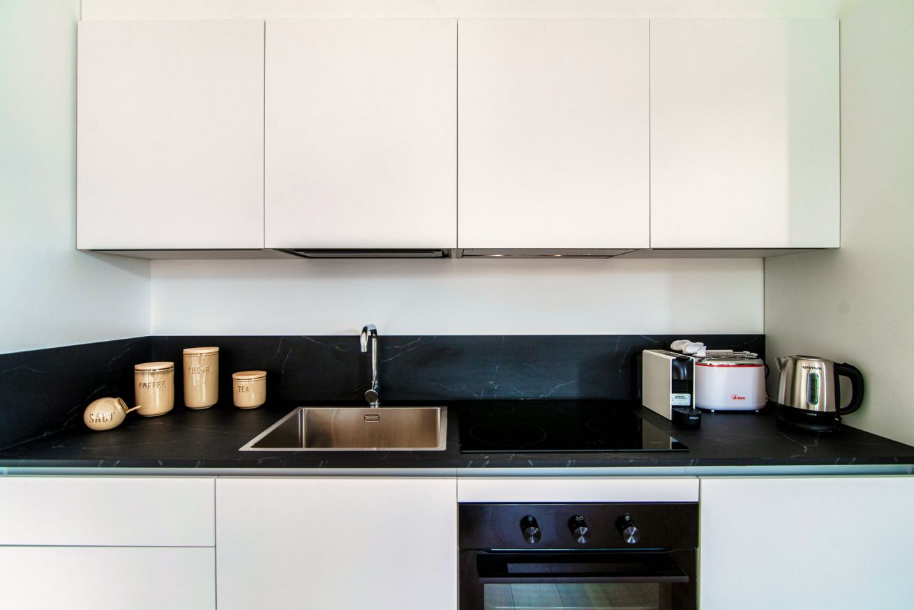 The air-conditioned apartment comfortably accommodates two people, making it an ideal choice for a romantic getaway or a peaceful retreat. There is a secluded double bedroom, perfect for a restful night's sleep. The bathroom is equipped with a refreshing shower, ensuring you start your day on the right note. The kitchen and living area are thoughtfully combined, creating a cohesive space for relaxation and culinary endeavors. In the kitchen, you'll find all the amenities you need, including an oven, a gas stove, a kettle, a Nespresso machine for your coffee cravings, a dishwasher for effortless cleanup, and a fridge to store your groceries.