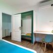 From the living area, there is a window with a lake view, as well as a small balcony. The sofa bed will accommodate two extra guests, perfect for kids.