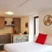 Studio Red features a double sofa bed, a fully equipped kitchenette with everything needed for cooking, and a complete bathroom with a shower. The apartment can accommodate up to 2 people and includes heating and free Wi-Fi.